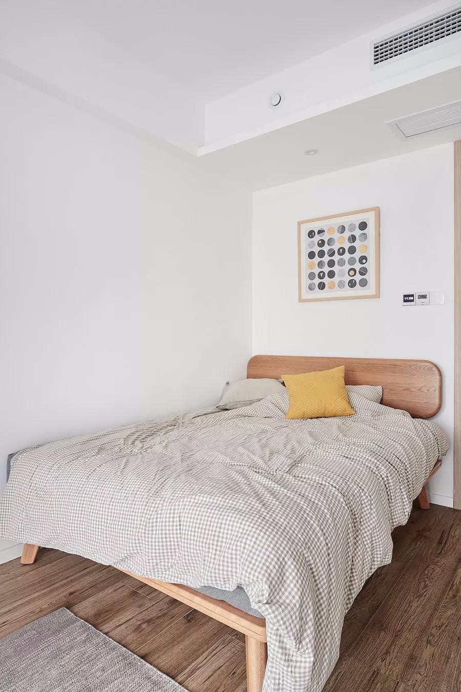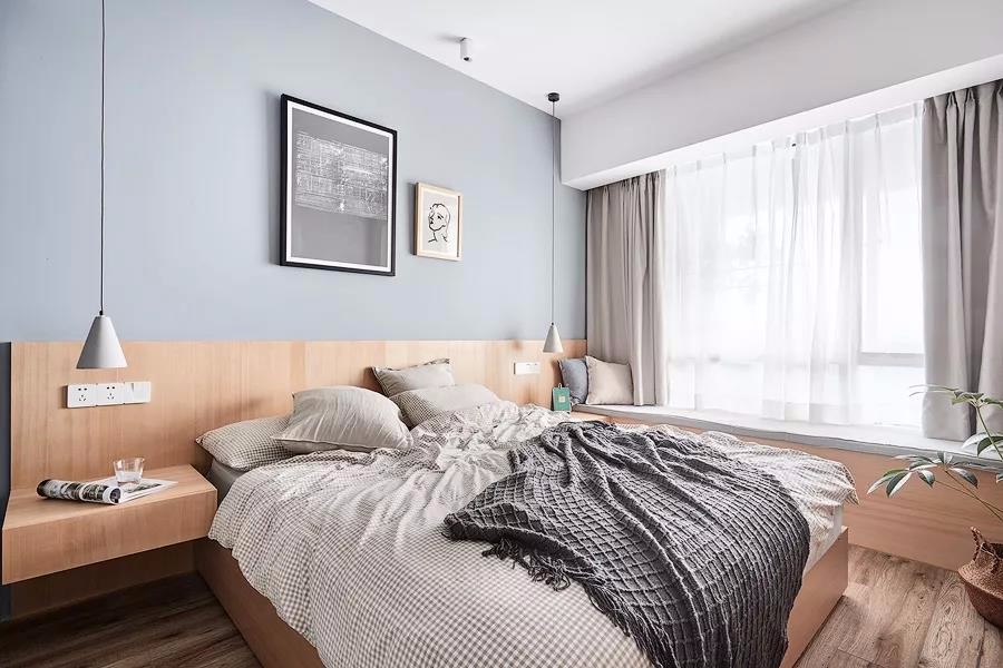 有2個臥室,還有1個小書房,布局真的很不錯。整個家大量搭配了原木家具,清新又自然,文藝又有格調(diào),好喜歡這種休閑又放松的家居氛圍。很多人問我客廳刷什么顏色的乳膠漆好,我覺得淺灰色不錯,客廳采光特別的給力,好喜歡休閑飄窗的設(shè)計(jì),視野十分開闊,看書休憩都特別的舒服。淺灰色調(diào)不會顯得過于沉穩(wěn),在布藝中加些暖色,會更顯休閑溫馨感。軟裝搭配細(xì)節(jié)放大看一看,哈哈,質(zhì)感真的不錯,黃色抱枕真的超愛了!搭配個小邊幾,擺上綠植,清新又養(yǎng)眼,裝修的時候墻面別忘了預(yù)留插頭,平時充電會更方便些.主臥的采光也特別棒,整個空間氛圍清新又自然。很喜歡床頭木質(zhì)護(hù)墻板的設(shè)計(jì),和臥床、床頭柜融為一體,十分的協(xié)調(diào)。廚房雖然面積不大,但也打造出U型布局,動線合理,操作方便。很喜歡這種時尚中融入清新色調(diào)的搭配了。冰箱也有了歸屬感!