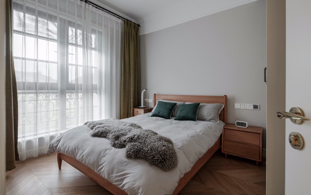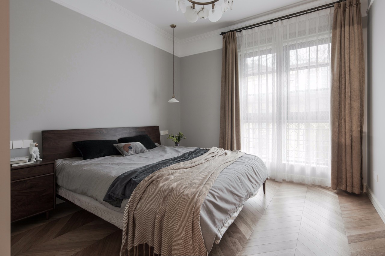 房主比較偏愛灰色調,從床品的選擇可以看出來,灰色代表低調,格子代表嚴謹,而藍色靠枕一點綴,內心的熱情與奔放又不言而喻。大體可以看出男主人是一個悶騷的文藝暖男。